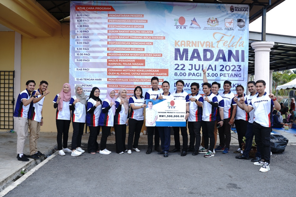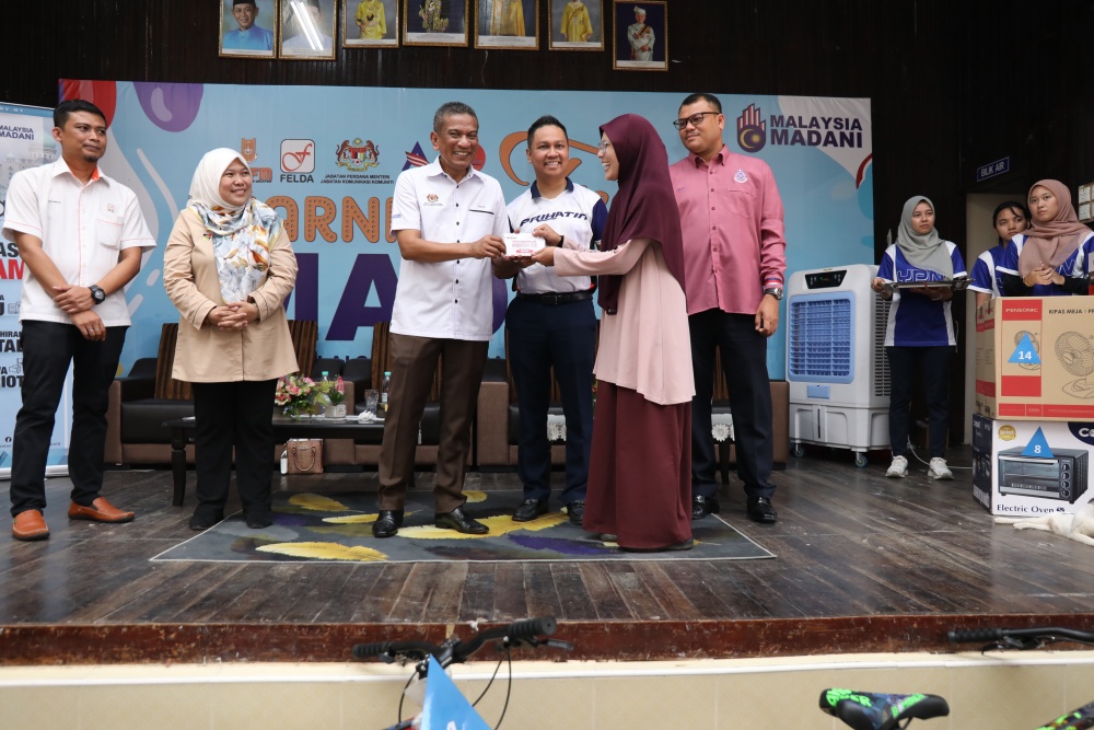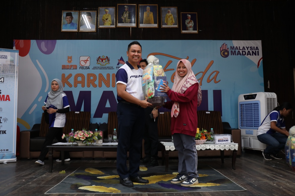 Karnival Felda Madani was an event organized by the Community Communications Department (J-KOM) of the Prime Minister's Department, the Federal Land Development Authority (FELDA), and Yayasan Prihatin Nasional (PRIHATIN). This community program was held in the FELDA area to celebrate the settlers and the community. FELDA, or the Federal Land Development Authority, is a government agency that helps build and develop the agriculture and entrepreneurial sectors among settlers in Malaysia. This carnival is part of the government's initiative to foster community spirit through social integration, aiming to create a solid and harmonious life in line with Malaysia's Madani vision.