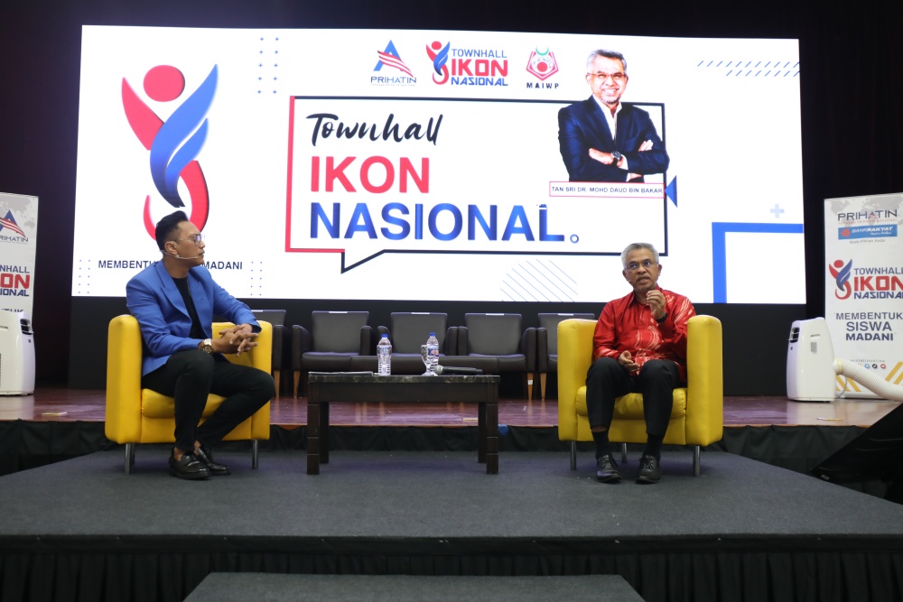 Yayasan Prihatin Nasional (PRIHATIN) and the Community Communications Department (J-KOM) of the Prime Minister's Department, in collaboration with Majlis Agama Islam Wilayah Persekutuan (MAIWP), have taken the initiative to organize a talk show called Townhall Ikon Nasional. The program involves new and prospective students of higher learning institutions. Townhall Ikon Nasional focuses on knowledge sharing from successful figures across various fields to cultivate a first-class mentality among graduates. Several Malaysian icons from diverse backgrounds have been invited to share their insights and experiences. Additionally, this program provides health services to students of higher learning institutions to raise awareness about the importance of good health from various perspectives.